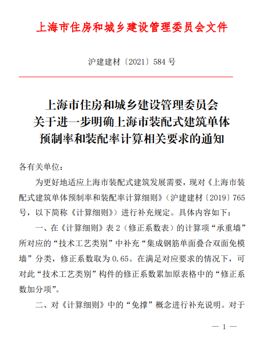 為更好地適應(yīng)上海市裝配式建筑發(fā)展需要,上海市住建委現(xiàn)對(duì)《上海市裝配式建筑單體預(yù)制率和裝配率計(jì)算細(xì)則》進(jìn)行補(bǔ)充規(guī)定(以下簡(jiǎn)稱《計(jì)算細(xì)則》)。具體內(nèi)容,詳見↓